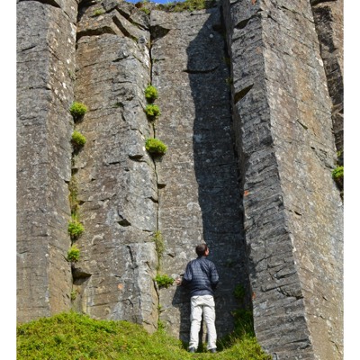 We eventually got down to the south side of the peninsula and saw the Gerðuberg Cliffs. It was windy but we had fun exploring the unique area! Also on our list was a crater near the cliffs, but that required a hike which neither of us was up for. So we started toward Reykjavík. We eventually got off of the peninsula turned onto Ring Road 1 but going away from Reykjavík as a side drive. We then turned onto 50 for a loop that took us by Deildartunguhver hot springs were we also grabbed lunch in the form of hotdogs with a side of fries and an Applesin to drink. The hot springs were so neat and produced so much water at 212F that it is pumped a good distance to heat homes!