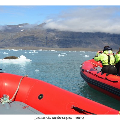 We gathered at 1:20PM for our 1:40PM zodiac tour of the lagoon. A big group didn’t show up so there was only 10 of us for the two boats that normally would carry 20 between them. So we only had six on our boat. They put us in big coverall style orange suites to help if we fall into the lagoon and to keep us warm while cruising on the water. The suits were very warm walking to the boats but once the boats got up to speed, we could see why they gave them to us. It was a blast! The lagoon didn’t look like it was so big but that was because the glacier is so tall and massive! It was over 8km from the boat launch to the face of the glacier and we flew there! Our guide was Marco and really good! We got to see a seal up close sunbathing on an iceberg. We also got to watch some pretty big chunks fall off the face of the glacier. It was about 45 minutes or so out on the water. It was cold but the suits they gave us really did their job!