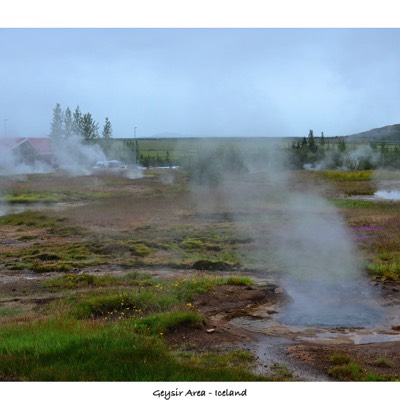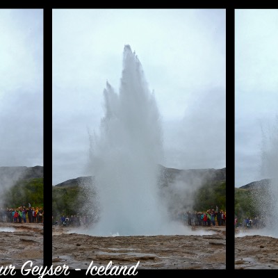 We left there closer to 1:00PM and headed for Geysir to start our tour of the ‘Golden Circle’. We got there and it started to rain a bit (and continued to for most of the rest of the day) so we grabbed lunch at the visitor center there. A decent fish and chips with some tasty, but watery tomato soup (we realized our core had in fact gotten cold during snorkeling and the soup helped). We then toured the geysers and hot springs including the super active Strokkur geyser, the semi dormant Geysir itself and numerous hot spots, hot springs and steam vents.