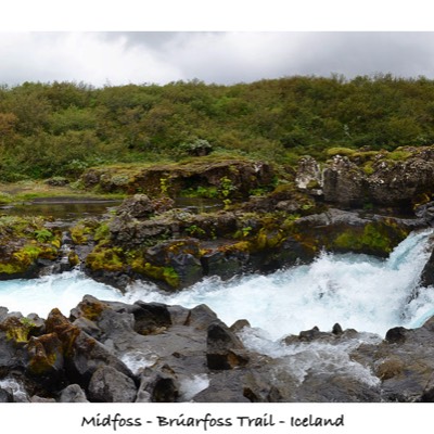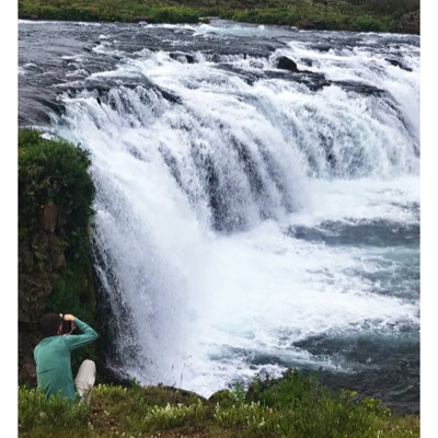 We headed west and found the parking area for Bruarfoss. Bruarfoss is a beautiful waterfall that used to have closer access but was via private land and driveway. Now, there is a trail to the waterfall set up to provide tourist access. Be careful, because Google Maps and the like can lead you to the actual falls, not the parking area. Google Maps really wanted us to turn down private drives. We started the hike at about noon. It was about two miles to the falls and we passed two other smaller falls on the way. As we got further up river, the water got bluer and bluer. By the time we got to Bruarfoss itself, the water was a striking blue! We arrived at the falls by about 1:00PM. It really looked amazing against the black volcanic rock! We left about 1:30PM and got back to the car at about 2:15. The trail was relatively flat, but muddy in spots.
