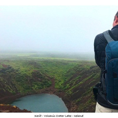 We woke up at 7:30 this morning. Finished packing, got ready and left by 8:15 - 8:30. Our first stop was Kerið, which was a crater lake. The weather was overcast, a bit misty and very windy, but the crater was so neat! We walked the rim as well as took the trail down into the crater. The water had a nice blue color and was interesting that nothing flowed into it nor out of it!