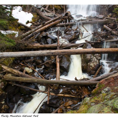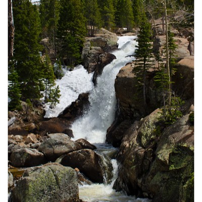 We then did the Alberta Falls from the Glacier Gorge trailhead that was near Bear Lake. The round trip was 1.7 miles and had an elevation gain of 200ft, starting at 9240ft and ending at 9400ft. The hike had some good stretches of snow on it, which was very slick for my very worn hiking boots. We were hitting snow at about the 9000ft elevation line the entire trip. We saw a very friendly chipmunk at Alberta Falls.