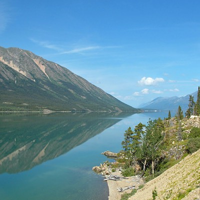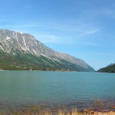 Our train was now on rails that a majority of tourist don't go on as we decended on the Canadian side of the pass. In Fraser, BC, Canadian customs officials boarded the train to stamp us into Canada and then our train continued on. In Bennett, BC, our train stopped at the station there for lunch. This is the traditional stop where the passenger trains between White Horse and Skagway would stop to feed the passengers. There was also the remains of St. Andrew's church and the remains from the prospectors of the Yukon Gold Rush. We were fed a fine stew lunch and were given a little time to explore the historic site. From Bennett, we rolled around the beautiful Bennett Lake. It was ice smooth and breath taking! Far too soon we arrived in Carcross where we were unloaded. We had a few minutes to explore the small town before a bus left to take us back to Skagway.