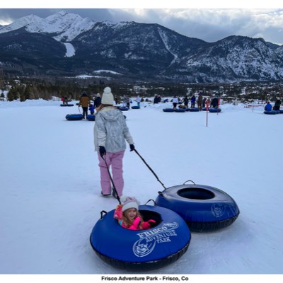 - We had a 3:15 reservation at Frisco Adventure Park for snow tubing. It was so much fun!